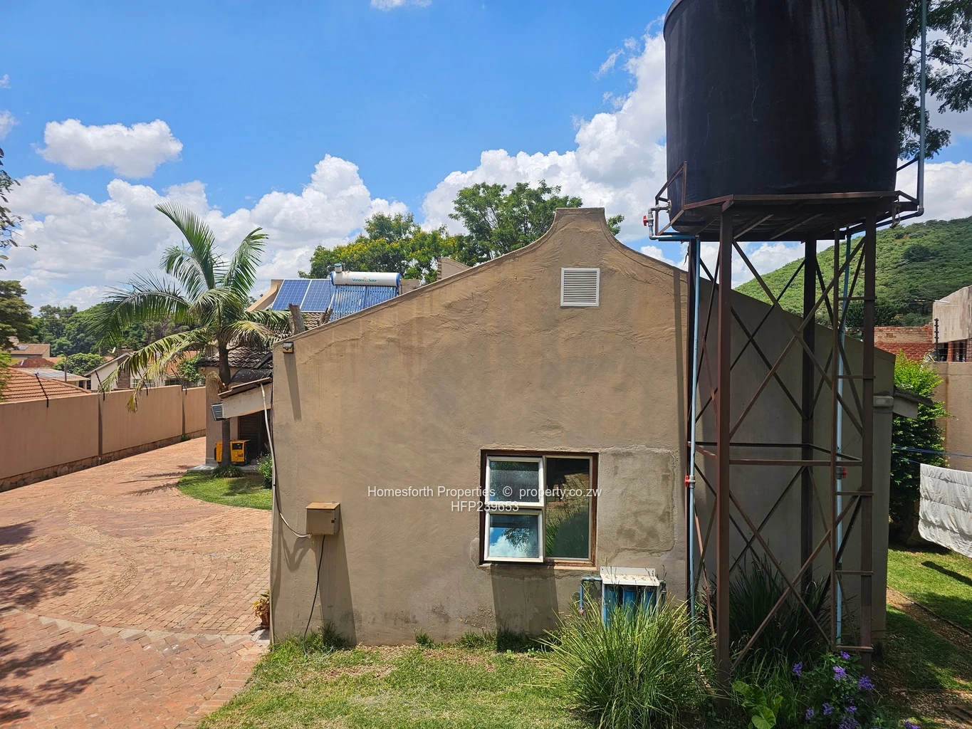 Main house has big lounge & dining, solar system, 5th bed with own kitchen & ensuite. Secure setup with electric fence, cameras, & alarm. Super clean bath and toilet with shower cubicle, prolific Borehole & 2x 5000L water tanks ensure water security. Beautiful and well mantained garden with water feature & electric gate.
